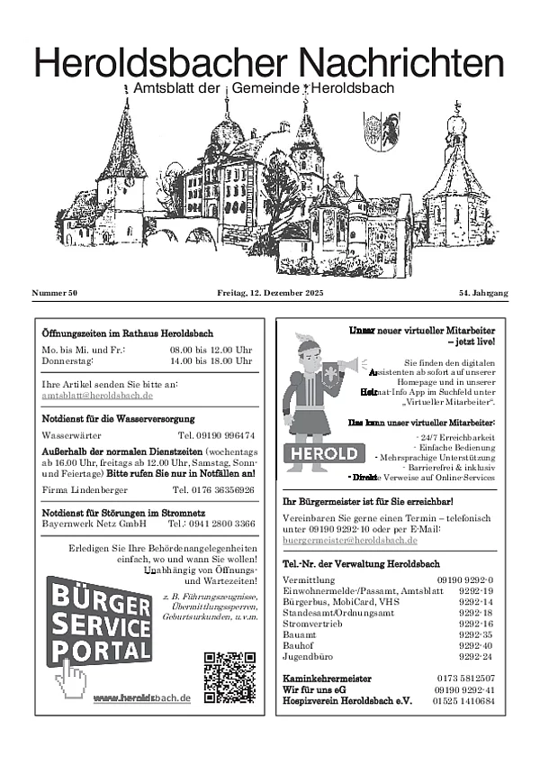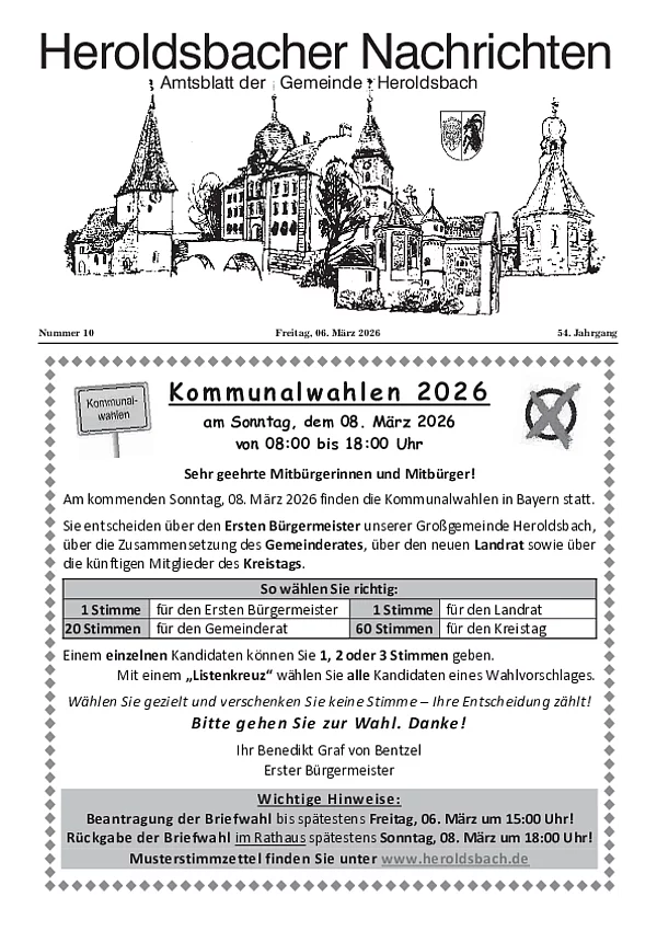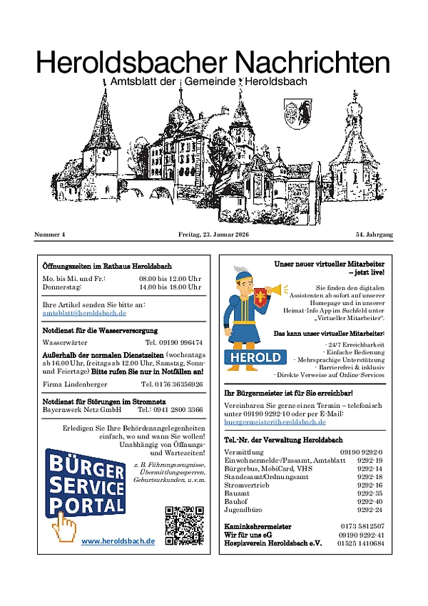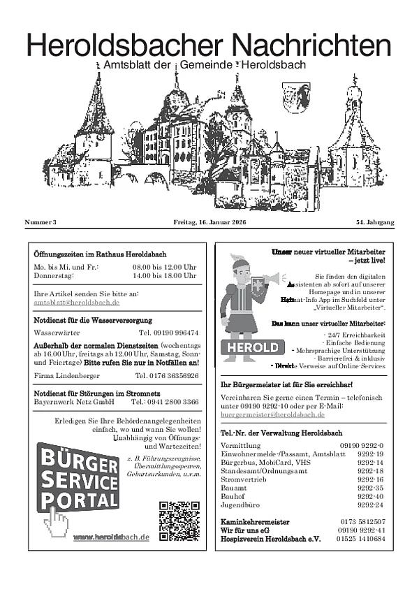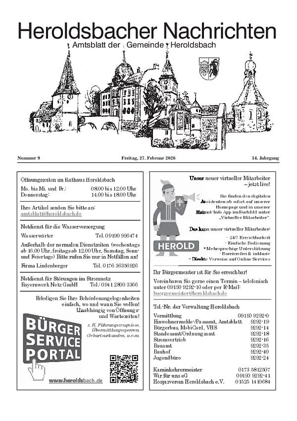 Sofern Sie einen Text im amtlichen Teil veröffentlichen wollen, senden Sie diesen bitte an folgende E-Mail-Adresse: amtsblatt@heroldsbach.de.
