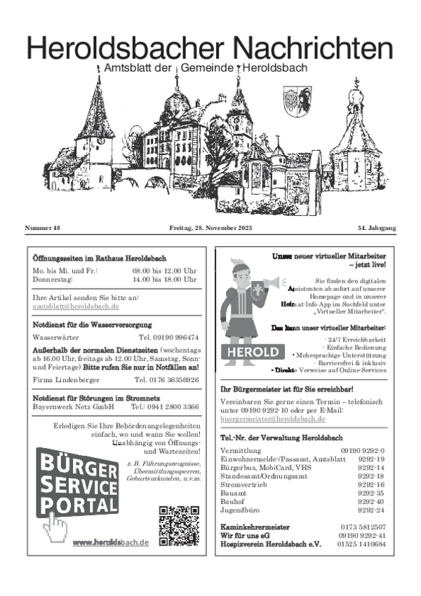Sofern Sie einen Text im amtlichen Teil veröffentlichen wollen, senden Sie diesen bitte an folgende E-Mail-Adresse: amtsblatt@heroldsbach.de