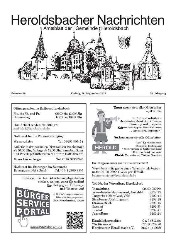 Sofern Sie einen Text im amtlichen Teil veröffentlichen wollen, senden Sie diesen bitte an folgende E-Mail-Adresse: amtsblatt@heroldsbach.de.