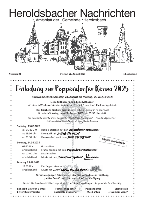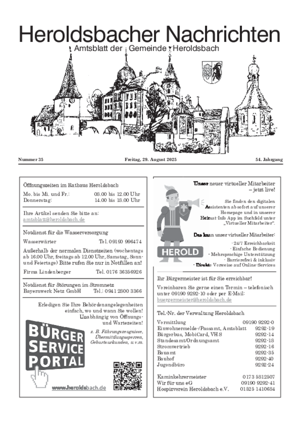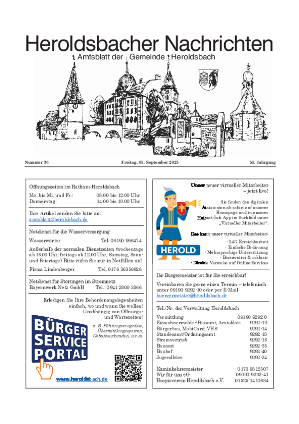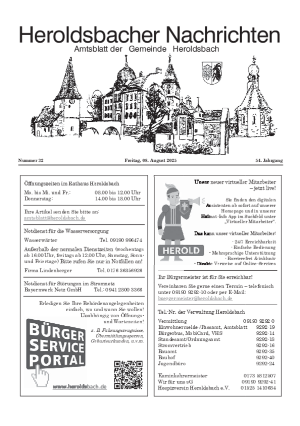 Sofern Sie einen Text im amtlichen Teil veröffentlichen wollen, senden Sie diesen bitte an folgende E-Mail-Adresse: amtsblatt@heroldsbach.de