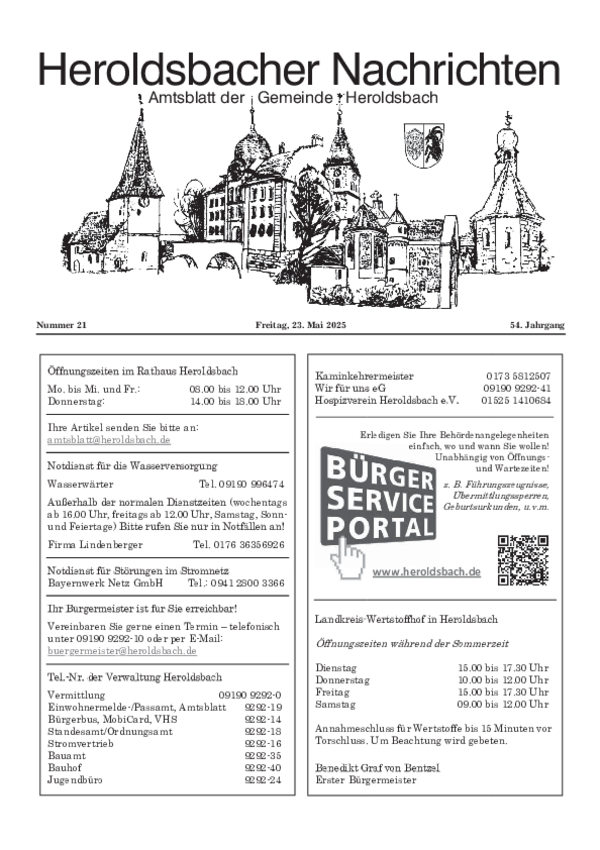 Sofern Sie einen Text im amtlichen Teil veröffentlichen wollen, senden Sie diesen bitte an folgende E-Mail-Adresse: amtsblatt@heroldsbach.de