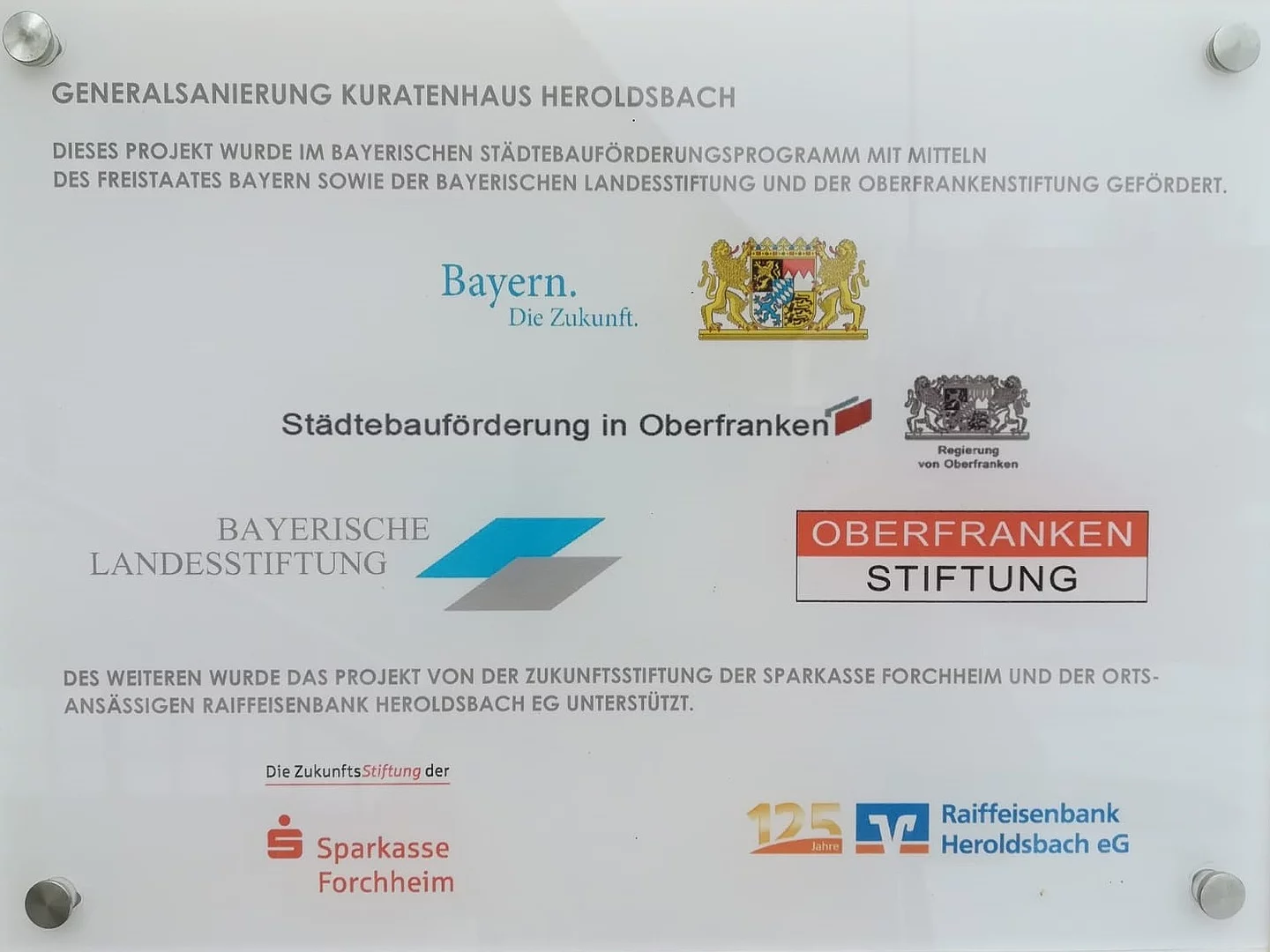 Unseren unzähligen Fördermittelgebern gilt unser herzlichster Dank. Die beiden Bildtafeln wurden zur aller Einsicht am Eingang des Kultur- und Bürgerzentrums – des Kuratenhauses – angebracht.