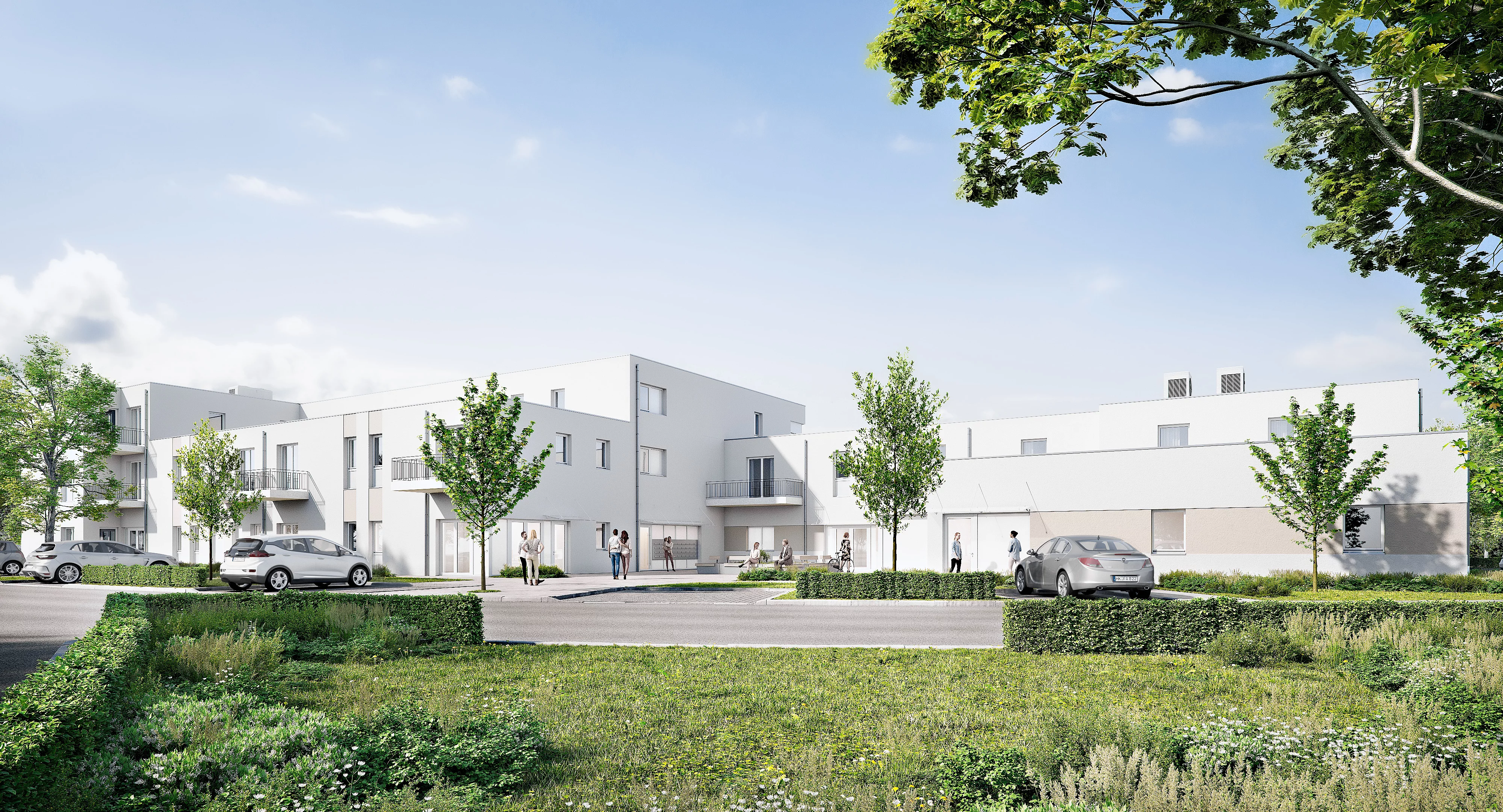 in unserer zentralen Ortsmitte dürfen wir neben den gewerblichen Einheiten – einer Arztpraxis, einer Apotheke, eines Friseursalons und einer Tagespflegeeinrichtung – insgesamt 28 Mietwohnungen mit ein bis drei Zimmern, mit einer Größe von 39 bis 74 Quadratmetern, beheimaten.