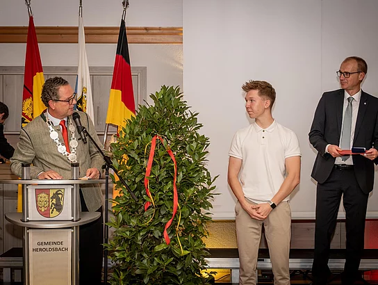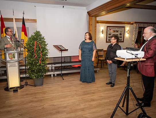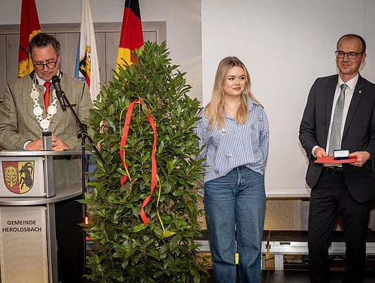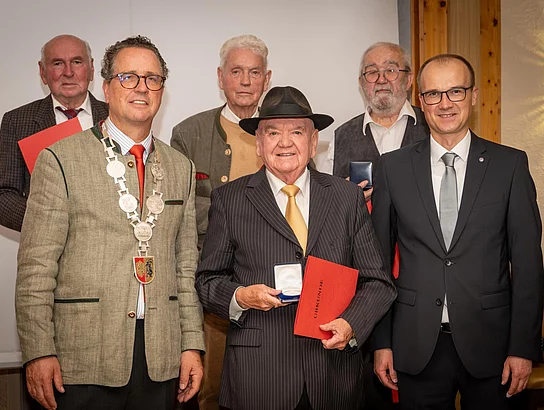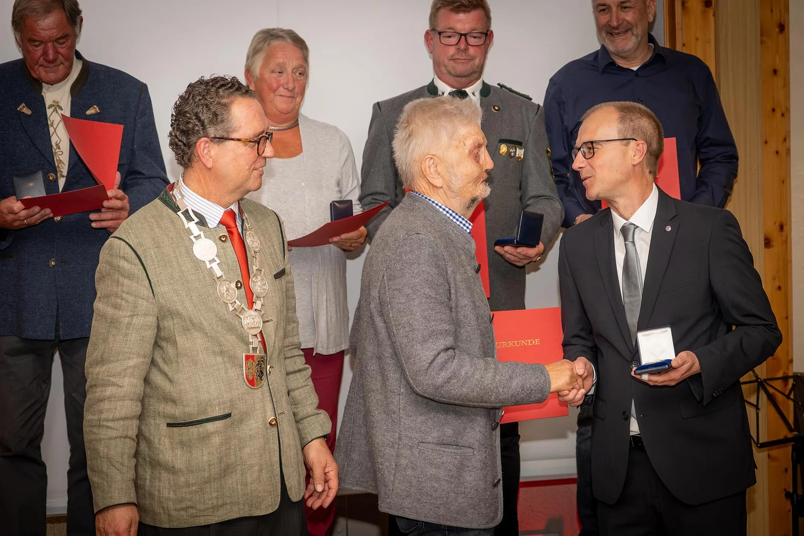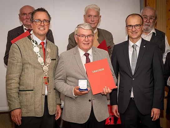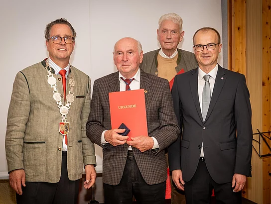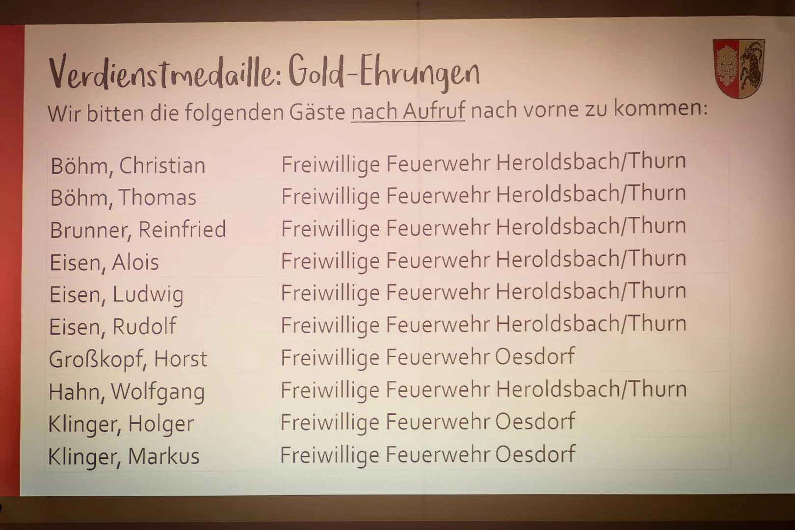 Franz Josef Saam für seine mehr als 60-jährigen musikalischen Leistungen, Hannfried Graf von Bentzel für eine über 60-jährige, Konrad Hahn für eine über 37-jährige sowie Hermann Wunderlich für eine über 45-jährige ehrenamtliche Tätigkeit in Heroldsbacher Vereinen. Georg Schmitt für seine mehr als 34-jährige Tätigkeit als ehrenamtliches Gemeinderatsmitglied.
