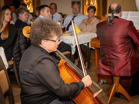 Die festliche Atmosphäre wurde durch musikalische Beiträge von Elena Ivanova-Ebert am Cello, Elena Ezhelev mit Gesang sowie Alexander Ezhelev am Klavier sowie einem reichhaltigen Buffet abgerundet. Bei anregenden Gesprächen und einem regen Austausch bot der Abend auch die Möglichkeit, das Miteinander der verschiedenen ehrenamtlichen Gruppen in der Gemeinde zu stärken.